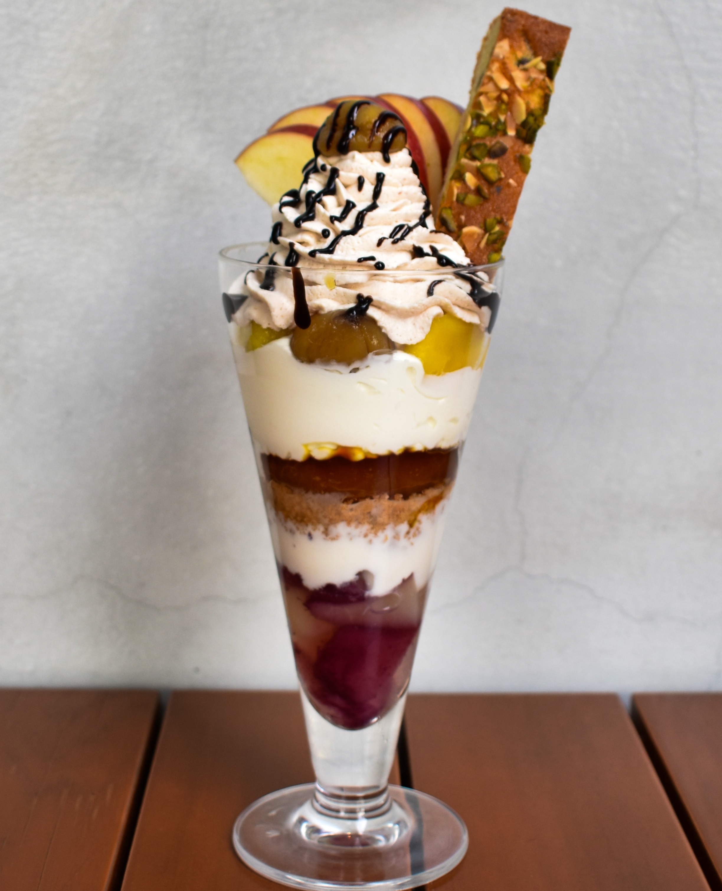 芳醇な洋梨のコンポートに林檎のキャラメリゼ、