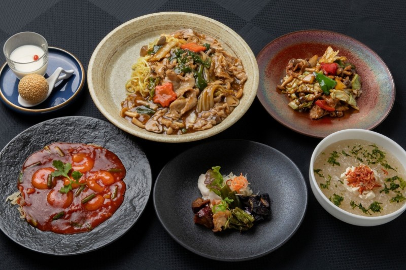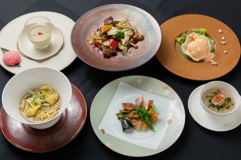 旬の素材を盛り込んだ前菜に始まり、磯の香り豊かなあおさと濃厚な旨みのフカヒレを合わせ、姫海老を添えた滋味深いスープ。外は軽やかに揚げた大海老のフリッターは、果実味あふれるマンゴーマヨネーズで爽やかな後味に。牛肉と柔らかなキャベツの黒胡椒炒めが力強いコクを添え、海鮮ワンタン入りスープそばで優しく締めくくります。